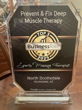 Proud to be named a 2025 BusinessRate Top 3 Sports Massage Therapist in North Scottsdale—based on Google reviews.
